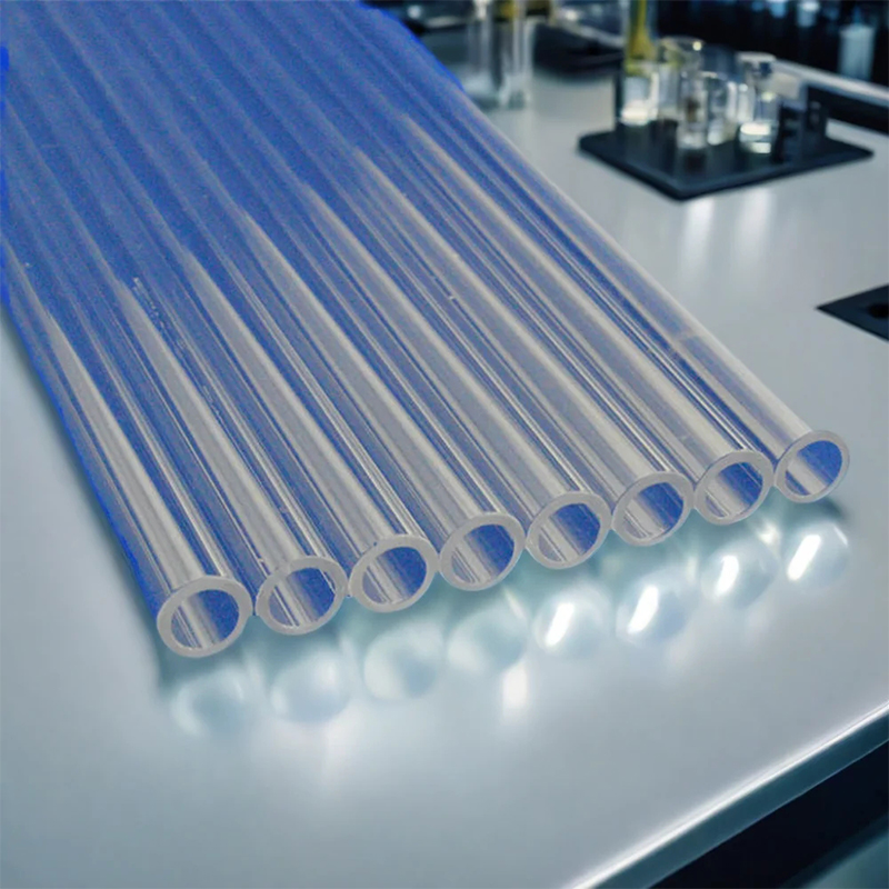 SiO2 tubus vicus diaphanus supra 99.9 attingit, et habet praeclaras dimensiones geometricas, stabilitatem chemicam, stabilitatem thermarum, resistentiam scelerisque denaturationis et anti-crystallizationis, et transmissionem opticam supra 93; Coetus hydroxyli tubi dehydroxylati infra 10ppm est, et post dehydroxylationem vacuum, coetus hydroxylis infra 5ppm attingere potest, qui productis hydroxylis humilis convenit, ut summus pressurae mercurialis lampadum, lampadarum sodium, et lampadum halidorum metallica.